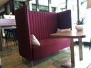 Die Lobby mit Barbereich lädt zum Verweilen ein. Den Gästen stehen Apple Computer Workstations zur Verfügung und die stylische wie bequeme Möblierung bietet sich ideal für Nach- und Vorbesprechungen eines weiteren Gamescom-Wahnsinn-Tages an.