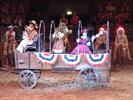 Zur Stärkung geht es am frühen Abend in die Buffalo Bill Show. Essen und Spektakel ist die Devise. Bei drei Shows jeden Tag werden auf einmal (!) 2.000 Menschen verköstigt. Allein die Logistik dahinter ist erstaunlich. Es gibt richtiges Western-Essen von Blechtellern, alle tragen Cowboy-Hüte  und wir sitzen in einer Art Arena mit aufsteigenden Sitzreihen. Dann geht es los. Wir vergessen beinahe zu essen. Zu spannend ist, was wir bestaunen dürfen: Akrobatik auf dem Pferd in vollem Galopp, Donald und Daisy auf einem Planwagen, Meisterschützen, Long-Horn-Rinder und  echte Bisons erobern die Bühne! Als wir danach glauben, dass nichts mehr diesen Tag toppen kann, ahnen wir noch nicht, was uns im Disneyland noch erwarten würde.