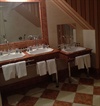 Sogar in dieser Luxus-Suite werden die Bedürfnisse der Kinder immer im Auge behalten. Im geräumigen Marmorbad gibt es ein drittes,  niedriger gesetztes Waschbecken extra für die Kinder.
